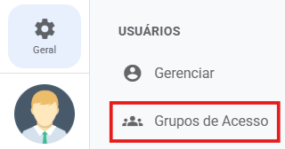 Este menu possui duas abas: Gerenciar e Grupos de Acesso. O segundo é onde você entrará para criar e editar grupos de acesso.