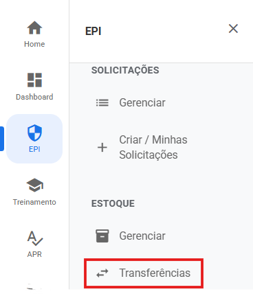 1. No menu lateral, busque por Estoque, clique em Transferências.
