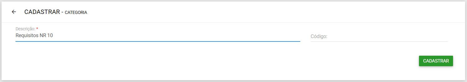 As Categorias são referentes aos tipos de treinamento, por exemplo, DDS, palestras, treinamento de segurança, integração de funcionário, etc.
