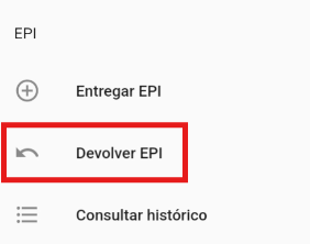 3. Após concluir o processo de sincronização busque por Devolver EPI no menu lateral.
