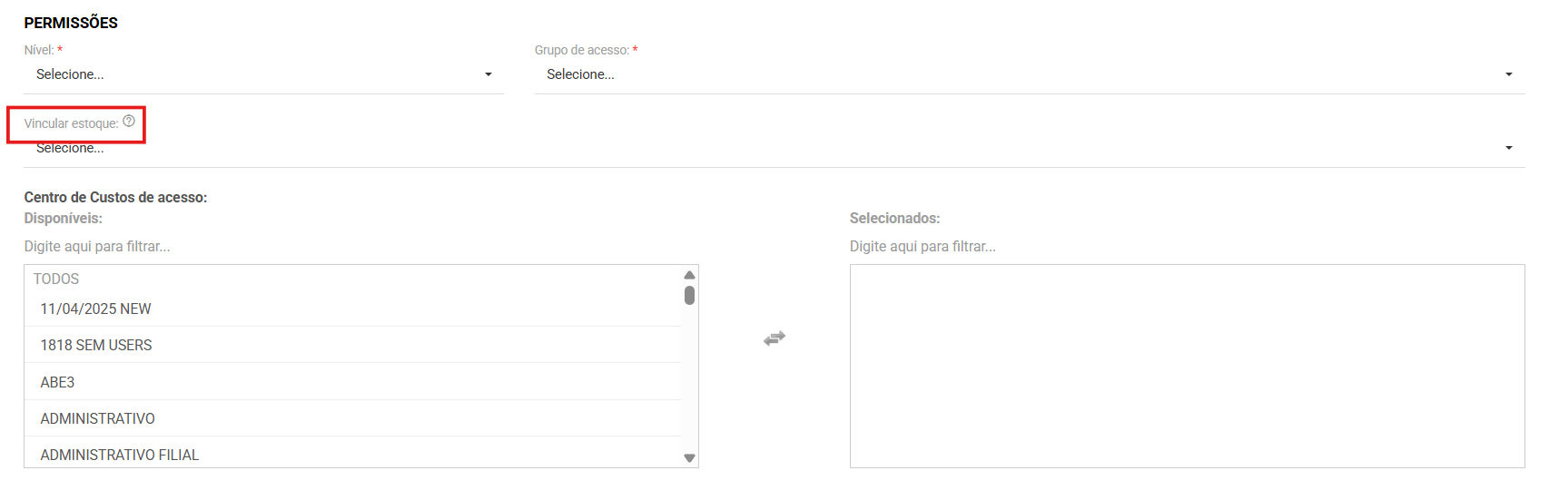 O vínculo do usuário ao estoque significa que todas as entregas de EPI realizadas por ele serão automaticamente baixadas do estoque ao qual está associado.