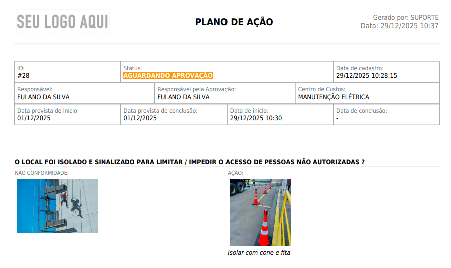 5.12. Por fim, emita o Plano de Ação em formato PDF, contendo as não conformidades, ações executadas e demais informações relevantes.