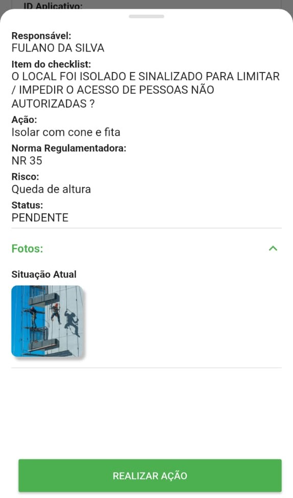 5.6. Clique sobre a ação desejada para visualizar os detalhes, incluindo as informações registradas e foto. Em seguida, selecione Realizar Ação.
