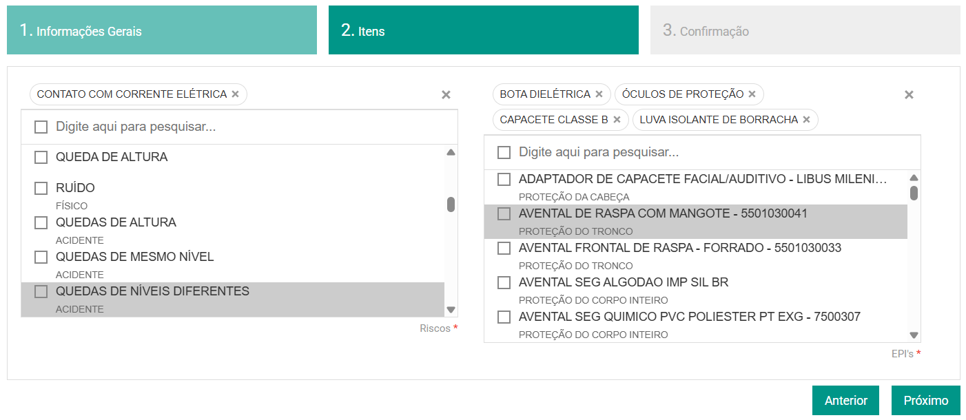 2.2. Ao informar a função, os riscos e os EPI correspondentes serão automaticamente vinculados, com a possibilidade de alterá-los conforme necessário.