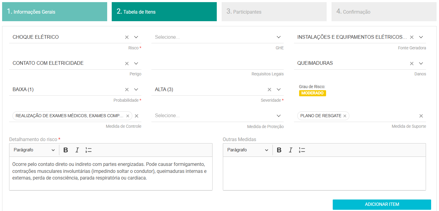 3.2. Algumas informações previamente cadastradas serão solicitadas. A combinação de probabilidade e severidade já trará o grau de risco de forma automática.