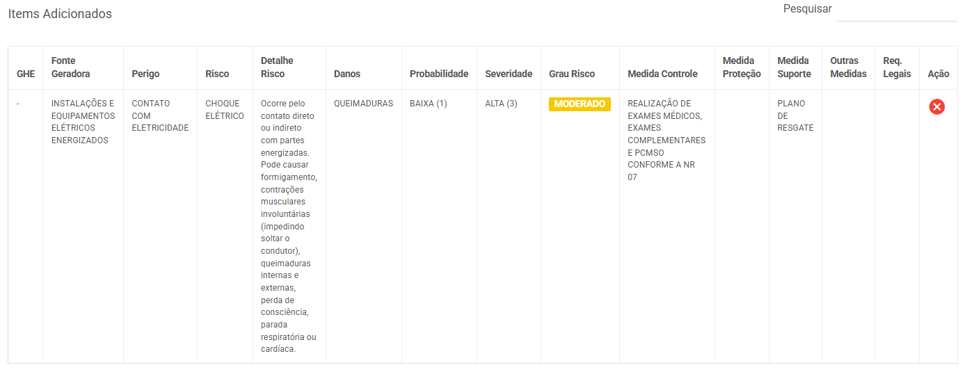 1.2. Perigo: Característica ou condição capaz de causar dano. Pode ser cadastrado também as medidas de controle, proteção e suporte.