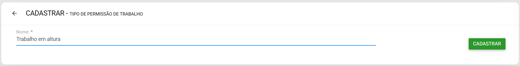 Esse cadastro corresponde ao tipo de atividade em que a Permissão de Trabalho se aplica.