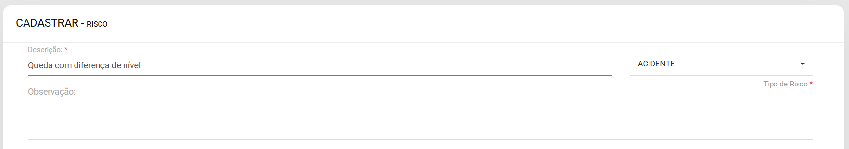 Cadastre os riscos que serão utilizados ao criar a Permissão de Trabalho.
