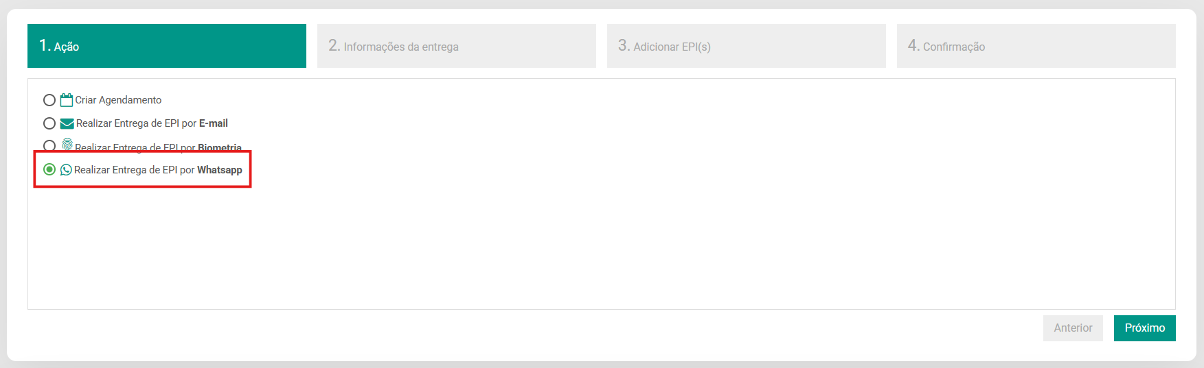 2. Para começar, selecione por qual canal será feita a entrega. No caso, WhatsApp.