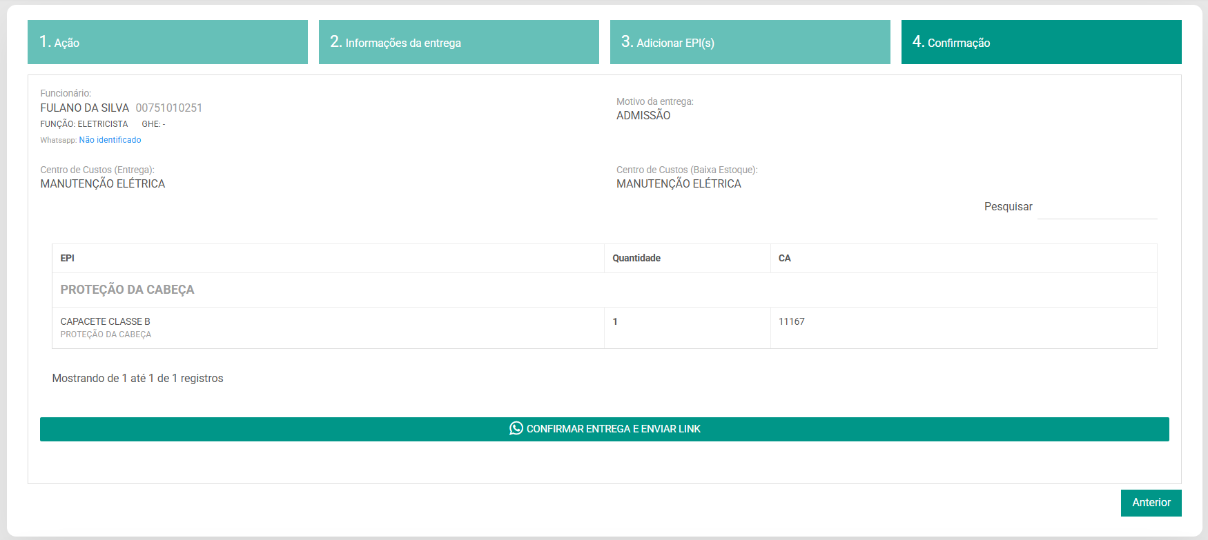3. Na 2ª Etapa (Informações da Entrega), você deve selecionar o funcionário e preencher outras informações de entrega.