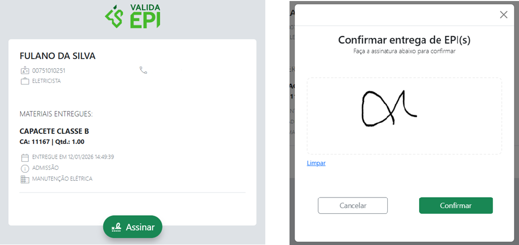 9. O link redirecionará para uma página com todas as informações. Ao clicar em Assinar, abrirá uma janela com campo para assinar na própria tela do dispositivo. Clique em confirmar para o processo ser finalizado.
