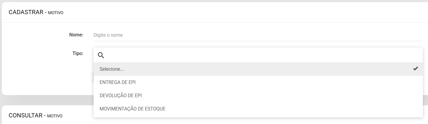2. Escreva o motivo e escolha para qual finalidade ele será usado: Entrega, devolução ou movimentação de estoque.