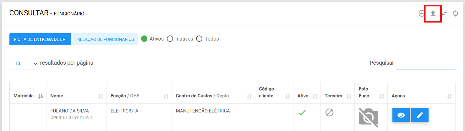Após a conclusão do cadastro, o funcionário estará disponível para o recebimento de EPI.