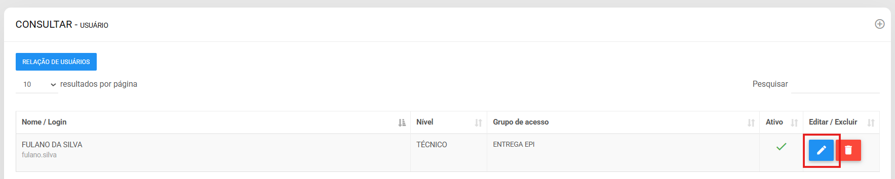 3. Clique no lápis para editar um usuário.